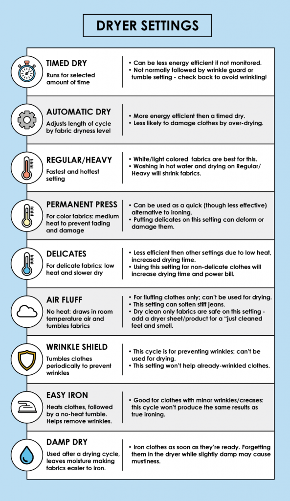 When it involves drying clothes, it might be argued that following the right cycle is even more important than when washing clothes. this is often because the extreme heat postpone by your dryer can quickly shrink, melt, or otherwise damage your clothes. If your dryer is unable to perform a cycle that your clothing requires, you ought to always Line or Drip Dry those items.